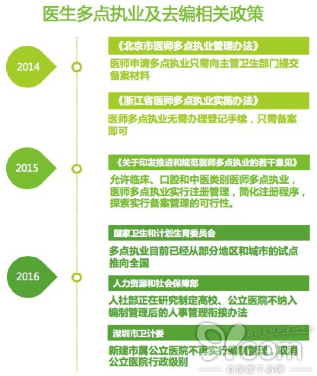 报告指出,我国72.6%的医生主要的执业方式是受聘于医院,86%的医生持有脱离体制,开展自由执业的意愿,医生多点执业意愿旺盛。加之多点执业政策的逐渐成熟,越来越多的医生开始考虑多点执业。